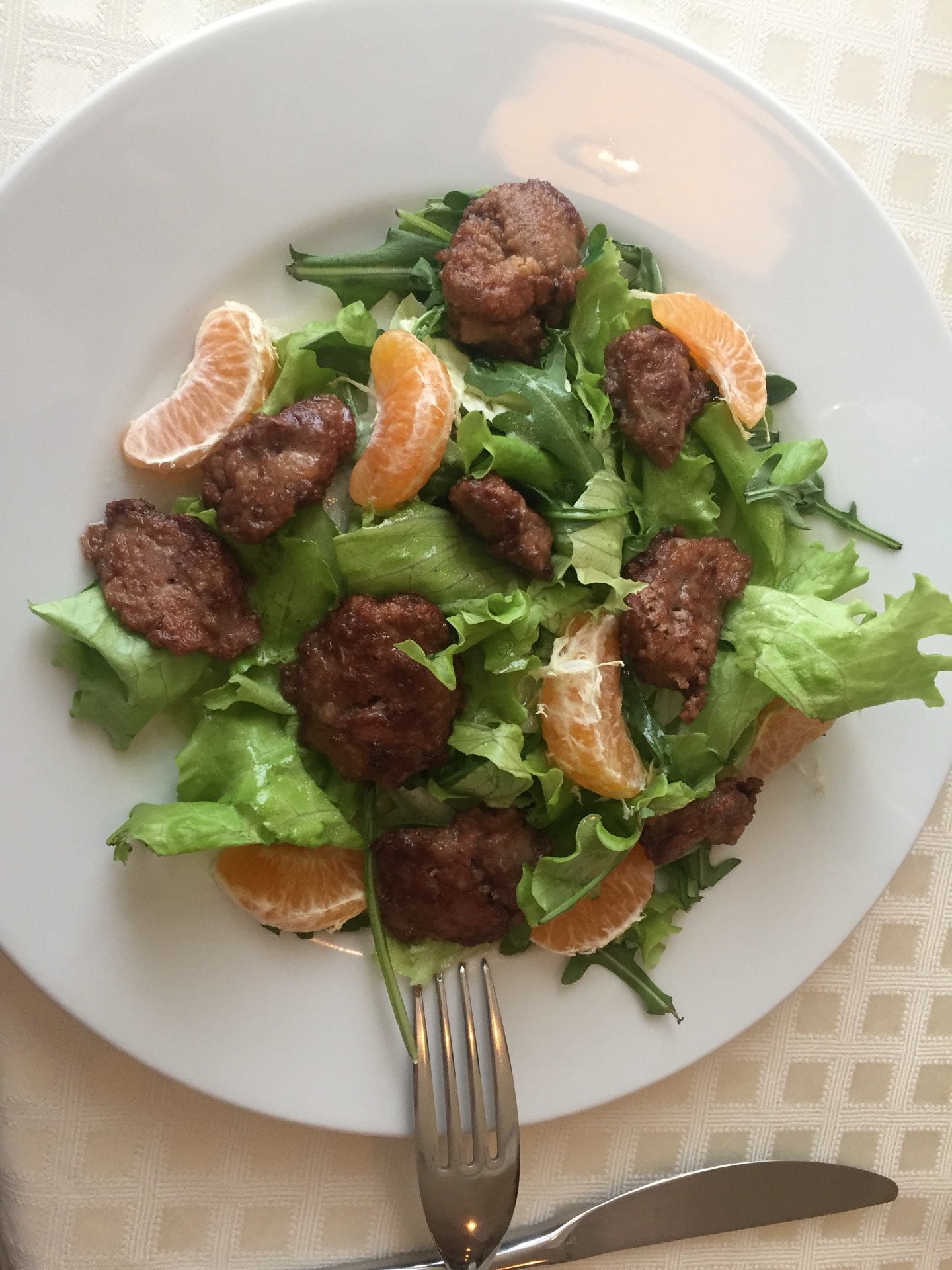 Здесь вкусный салатик "Дель Мара",телятина с овощами очень жесткая(